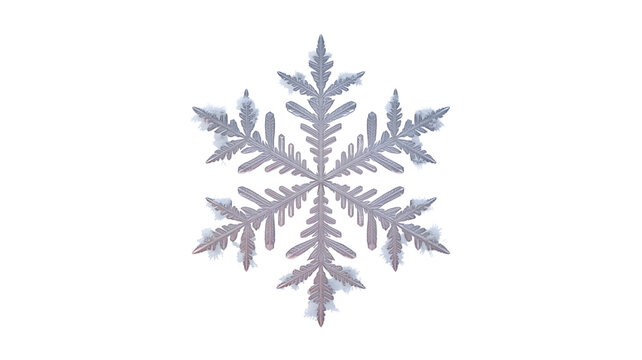 A single, detailed snowflake isolated on transparent background, showcasing its intricate crystalline structure and delicate beauty