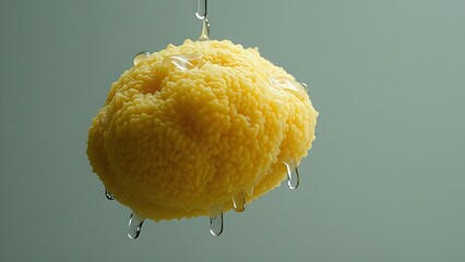 fishfinder. A heavy natural sea sponge saturated with water, drooping under its weight on a neutral background. wildlife magazines.