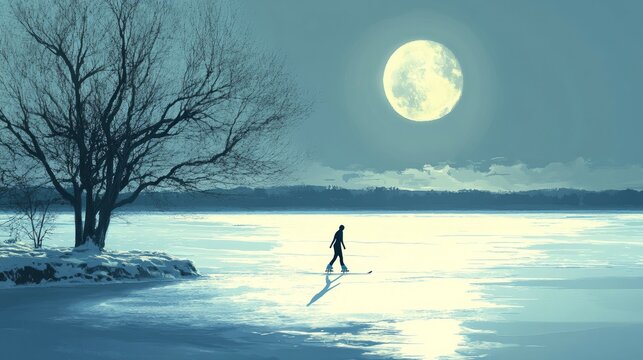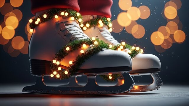 Close-up of women's legs in vintage skates against the background of an ice rink in snowy winter. Generated AI