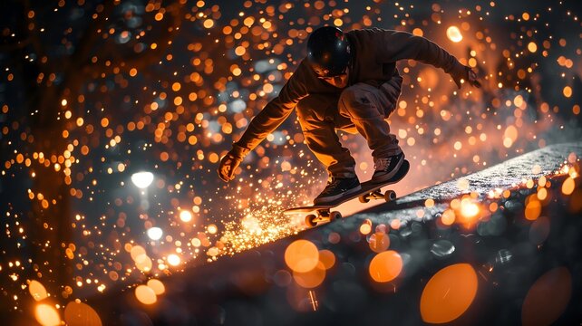 "Urban Sparks: Nighttime Skateboarding Thrills"