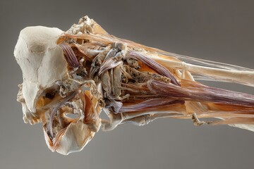 Close-up of a human skeletal foot and ankle bones against a white background.