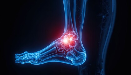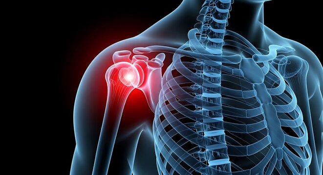 Shoulder joint inflammation depicted in a skeletal xray with highlighted pain