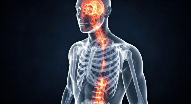 Human Skeletal System Medical Illustration Highlighting Detailed Spinal Column Anatomy And Health
