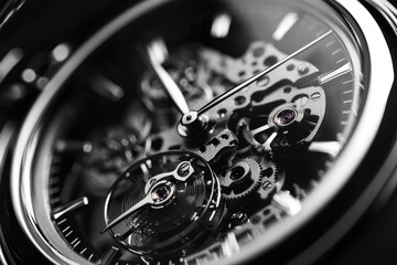 Close-up studio shot of a intricate skeleton watch mechanism, showcasing the beautiful complexity of a mechanical timepiece and luxury craftsmanship.