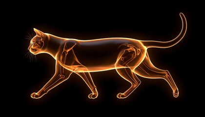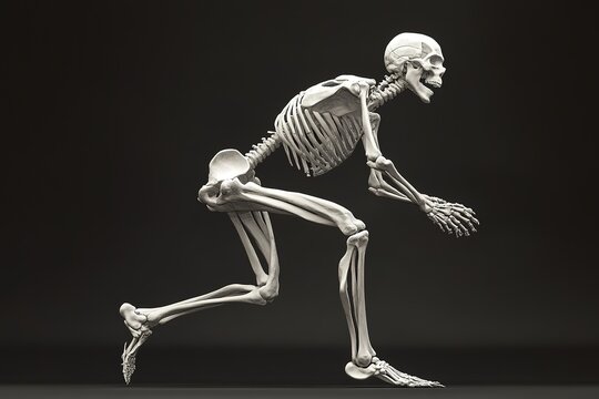 A stark silhouette of a human skeleton in profile, cast against a bright backdrop with strong shadows, ideal for artistic, medical, or philosophical contexts.
