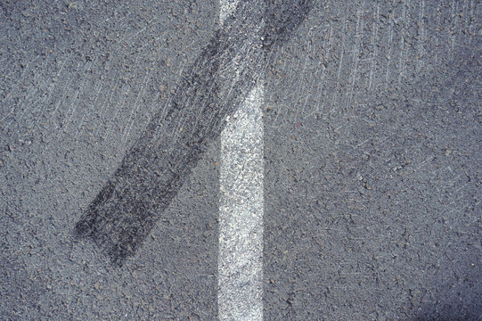 black rubber tyre skid marks on tarmac road - dangerous driving concept with copy space