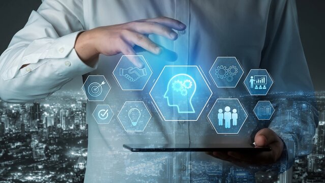 Corporate Training and Employee Skill Enhancement Displayed on a Virtual Screen.