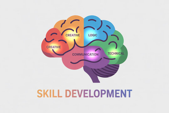 Vibrant brain illustration for skill development and learning concepts