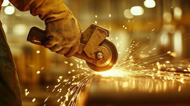 Industrial craftsmanship: Metal worker using an angle grinder with intense sparks