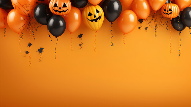 Halloween-themed balloons featuring pumpkin and skull designs with vibrant colors and festive atmosphere
