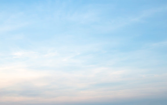 A tranquil gradient sky blending soft blues and warm oranges, evoking a serene, peaceful atmosphere at dawn or dusk.