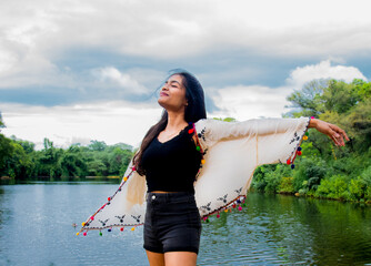 Woman opening her arms joyfully to the sky