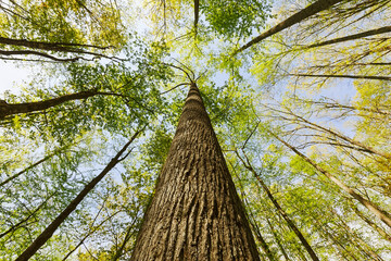 Wide angle view upward in the forest, Great Smoky Mountains, National Park, North Carolina.