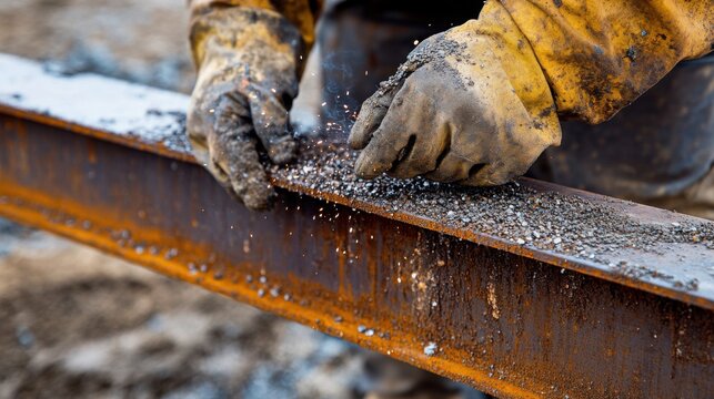 Steelworker welding reinforced steel beams for a skyscraper framework. Featuring precision and strength