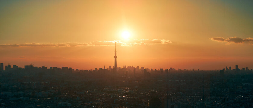View of Tokyo skyline at twilight