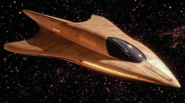 Futuristic spaceship soaring through a starry cosmos, showcasing sleek design and advanced technology