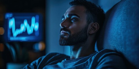 Overhead View of Glowing Data Visualization on a Bed, Sleep Monitoring AI InterfaceOverhead View of Glowing Data Visualization on a Bed, Sleep Monitoring AI Interface --chaos 15 --ar 16:9 --stylize 15