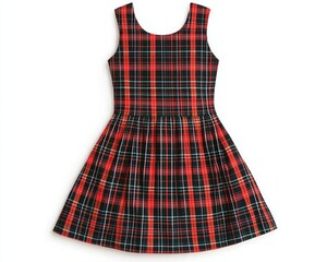 Red and black plaid dress with a black bow on a Transparency Background is presented here