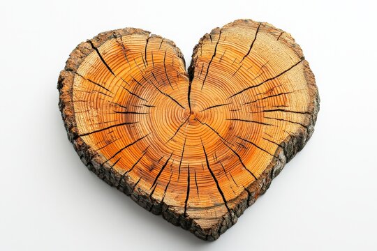 a detailed wooden tree slice in the shape of a heart