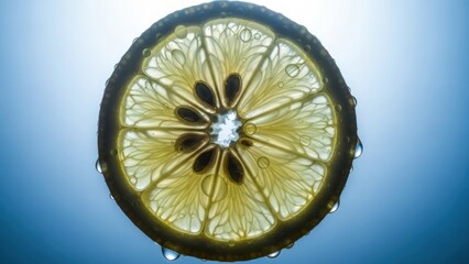Fresh lemon slices on vibrant blue background