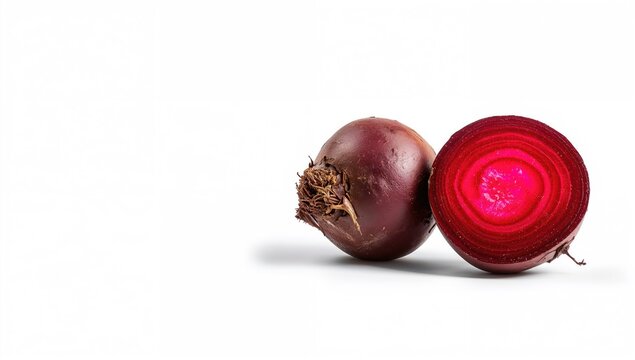 Red beets in sliced form on a white surface for food styling or nutritional display