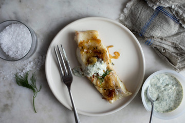 Steamed Sanyu or Steamed San yu served in a dish isolated on table side view