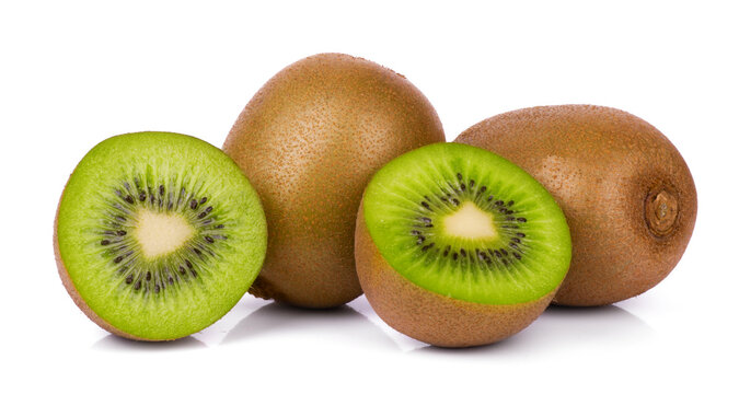 Kiwi and cut in half with clipping path. Kiwi fruits and sliced kiwi isolated.