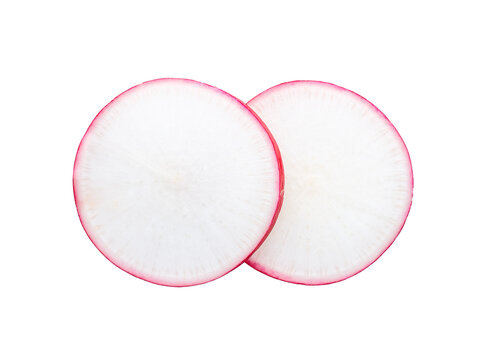 Radish isolated. Round slices of radish sliced on a transparent background, top view.