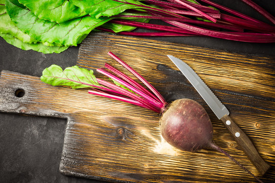 Sliced Red Beets On Slate Board In Rustic Kitchen Images
