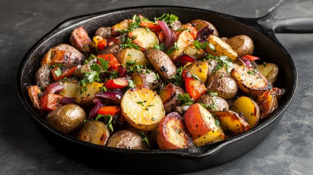 Scrumptious Roasted Potatoes and Vegetables in Cast Iron Pan