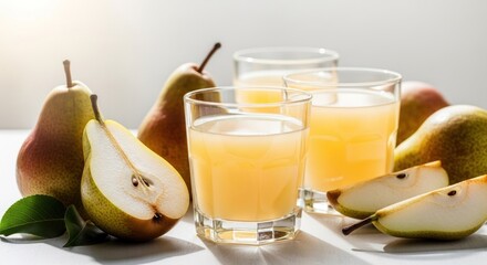 Four pear slices arranged on a transparent background, fresh, isolated, ripe