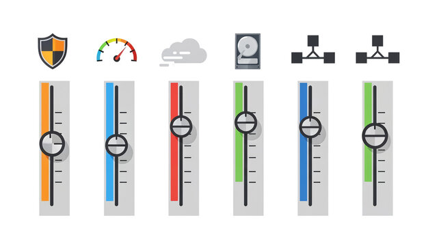 Digital Network Performance Dashboard with Slider Controls for Cloud Security Speed and Data Storage Optimization