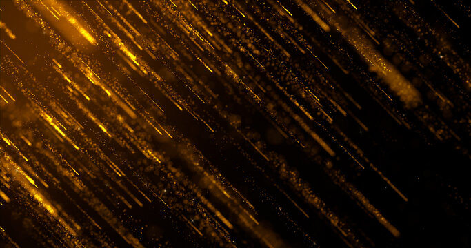 Banner Blurred Background Blue Christmas tree decorated gold bauble ornament in holiday winter xmas bokeh light. Panorama backdrop Gold light Blue christmas tree in cozy living room with copy space
