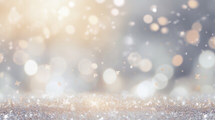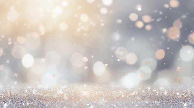 Silver Glitter Bokeh Slideshow Background for Happy Holidays and Christmas Templates. Defocused Metallic Sparkle Celebration in 16:9 Aspect Ratio
