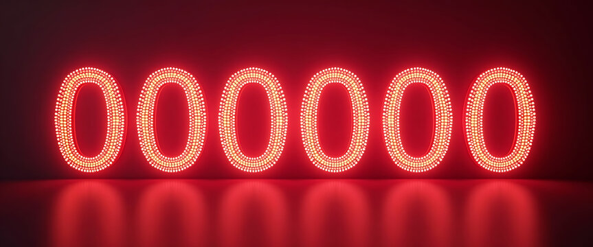 A captivating image showcasing six glowing red neon zeros, meticulously crafted with intricate small light points