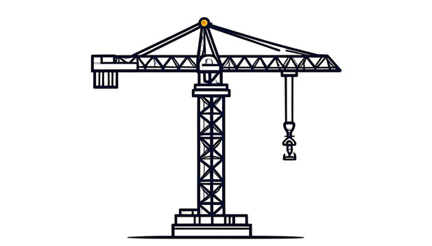 Dark blue silhouette of a construction crane, detailed with many small lights and components