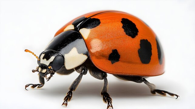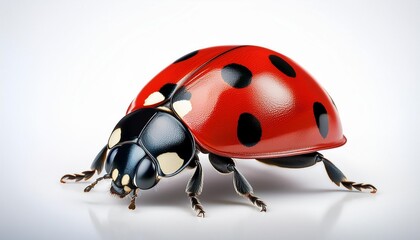 Close up Detailed Image of a Vibrant Ladybug Insect on White Background