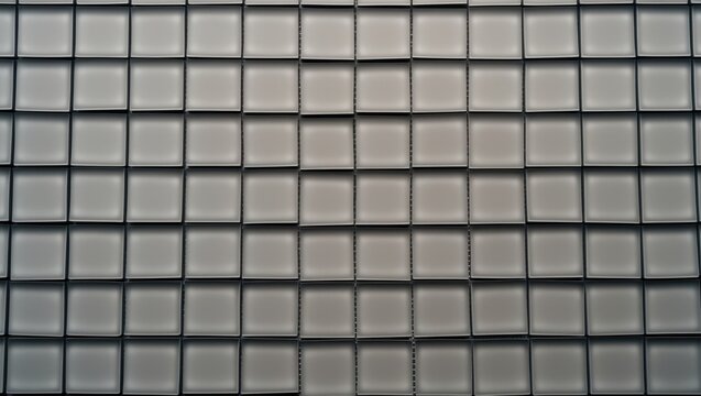 A gray concrete wall with a grid pattern and evenly spaced holes.