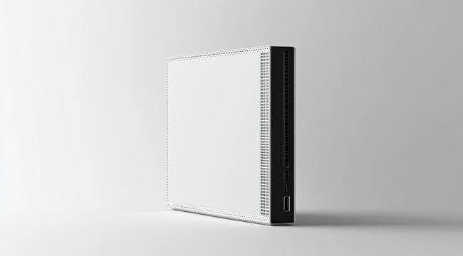 A white electrical box mounted on a white wall with two small holes.