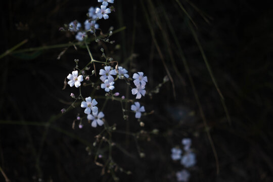 A close up of a bunch of white flowers with a blue background. The flowers are small and delicate, and the blue background adds a sense of calmness and serenity to the image