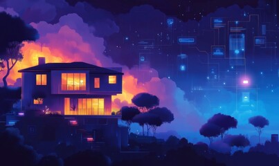 Vector conceptual banner for smart home technology Illustrates the integration of IoT systems and home automation through internet technology