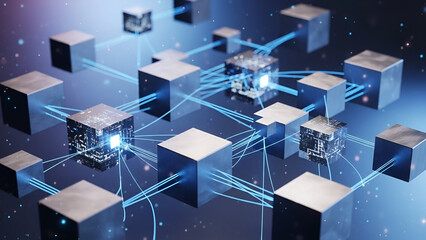 3D isometric illustration of a global communication network connecting city buildings and home offices through modern computer technology and data architecture
