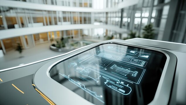 Futuristic digital interface display with modern data panels