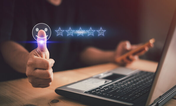Client User Assessment Satisfaction Feedback Ranking on Smartphone. Evaluation Researching of Business Performance With Trust Score and Quality from Clients. Survey Feedback of Customer Satisfaction.