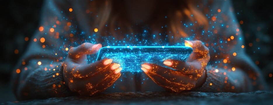 Holographic smartphone dashboard with futuristic interface