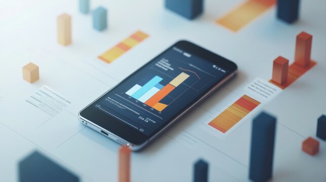 Smartphone displaying interactive charts and graphs, showcasing mobile data analytics and business intelligence, ideal for app marketing or technology presentations