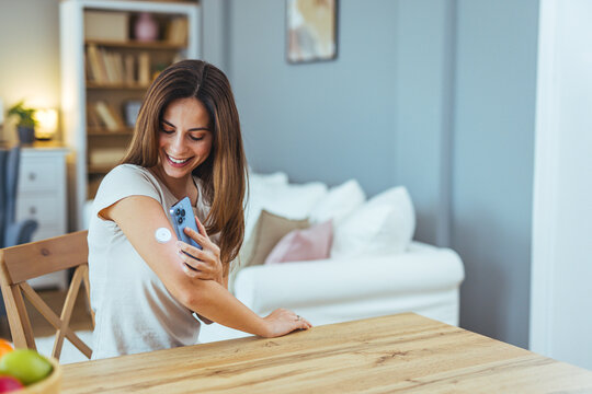 Discussing wearable leg sensor in casual home consultation with digital shopping overlay
