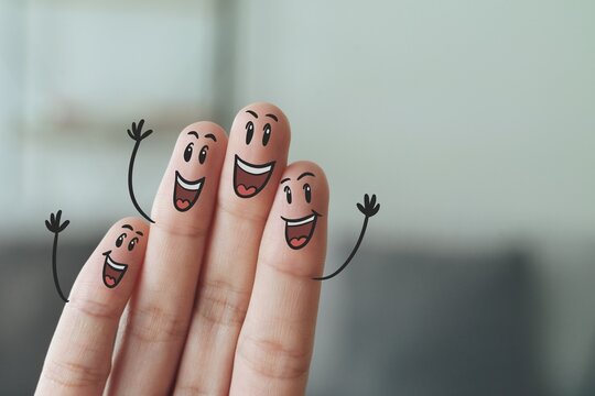 Fingers with Smile Face, Happy, Friendship, Family, Group, Teamwork, Community, Unity, Love Concept.