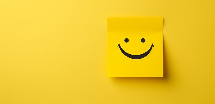 A bright yellow smiley face emoji with a happy expression on a vibrant yellow background