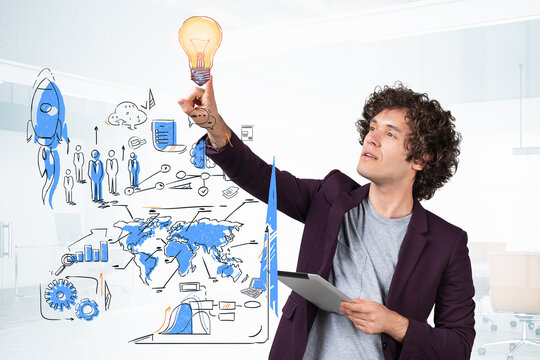 Smiling Businessman With Financial Graph Overlay Images